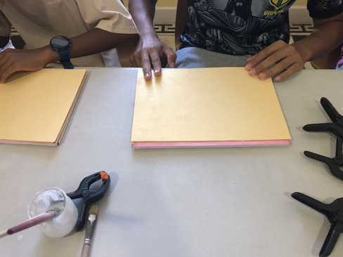  – Assemblez-les entre 2 autres feuilles cartonnées.