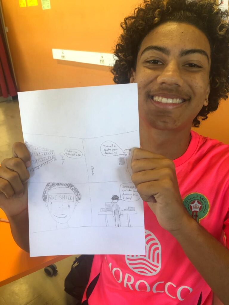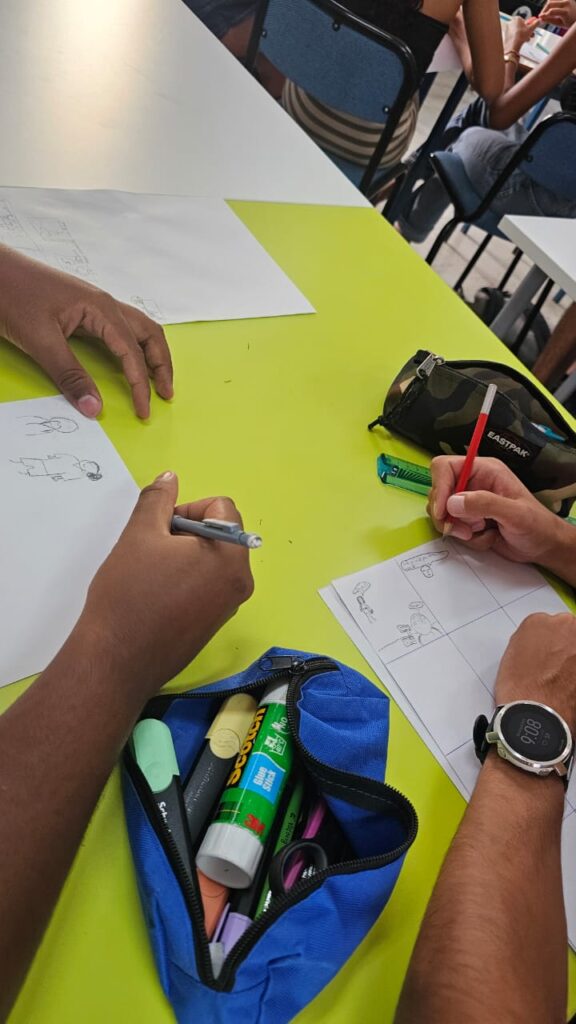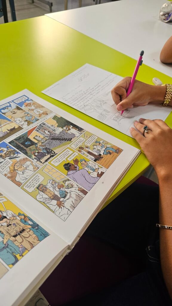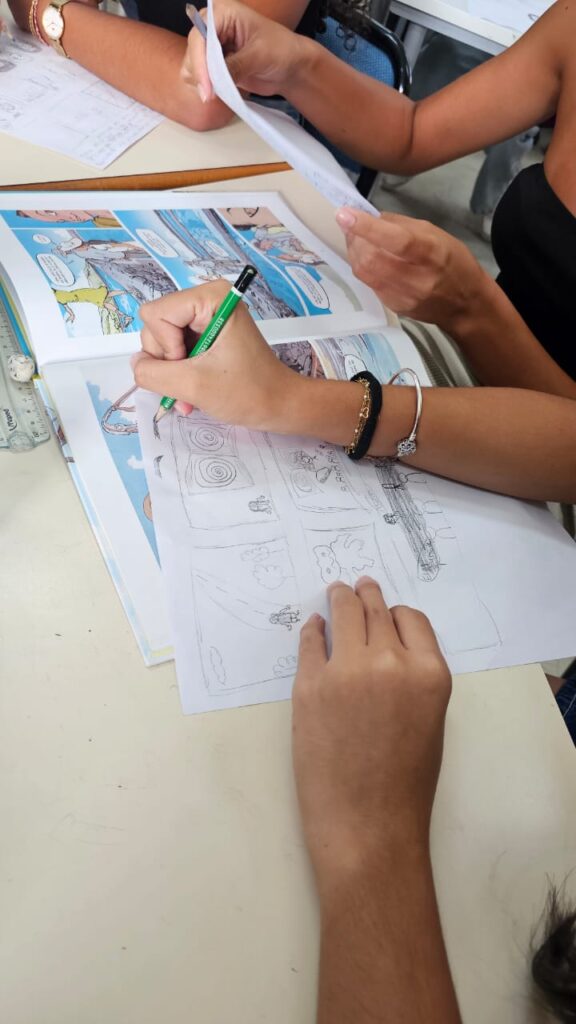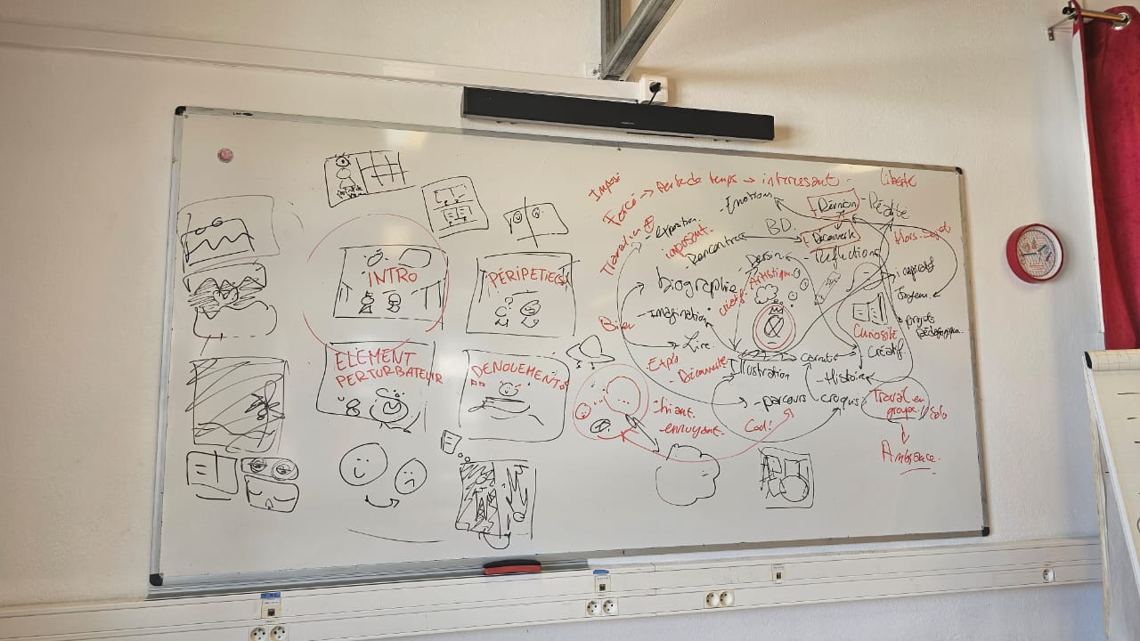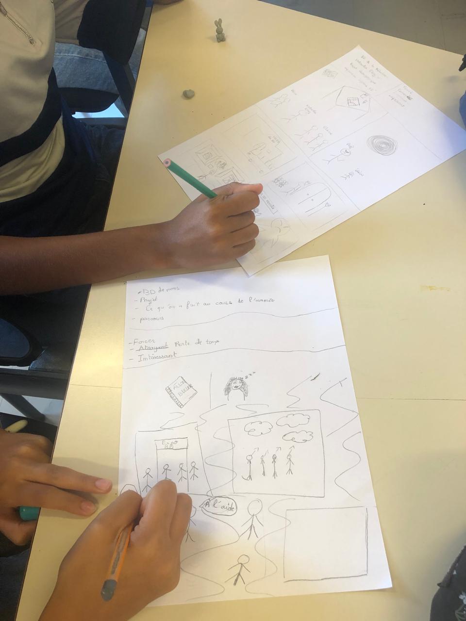 Ces ateliers avaient pour objectif de leur donner des clés concrètes pour construire un scénario, organiser leurs idées et réfléchir à la mise en scène de leurs personnages. Ils ont ainsi commencé à imaginer leurs histoires, penser les lieux, les rebondissements et la structure de leur planche.