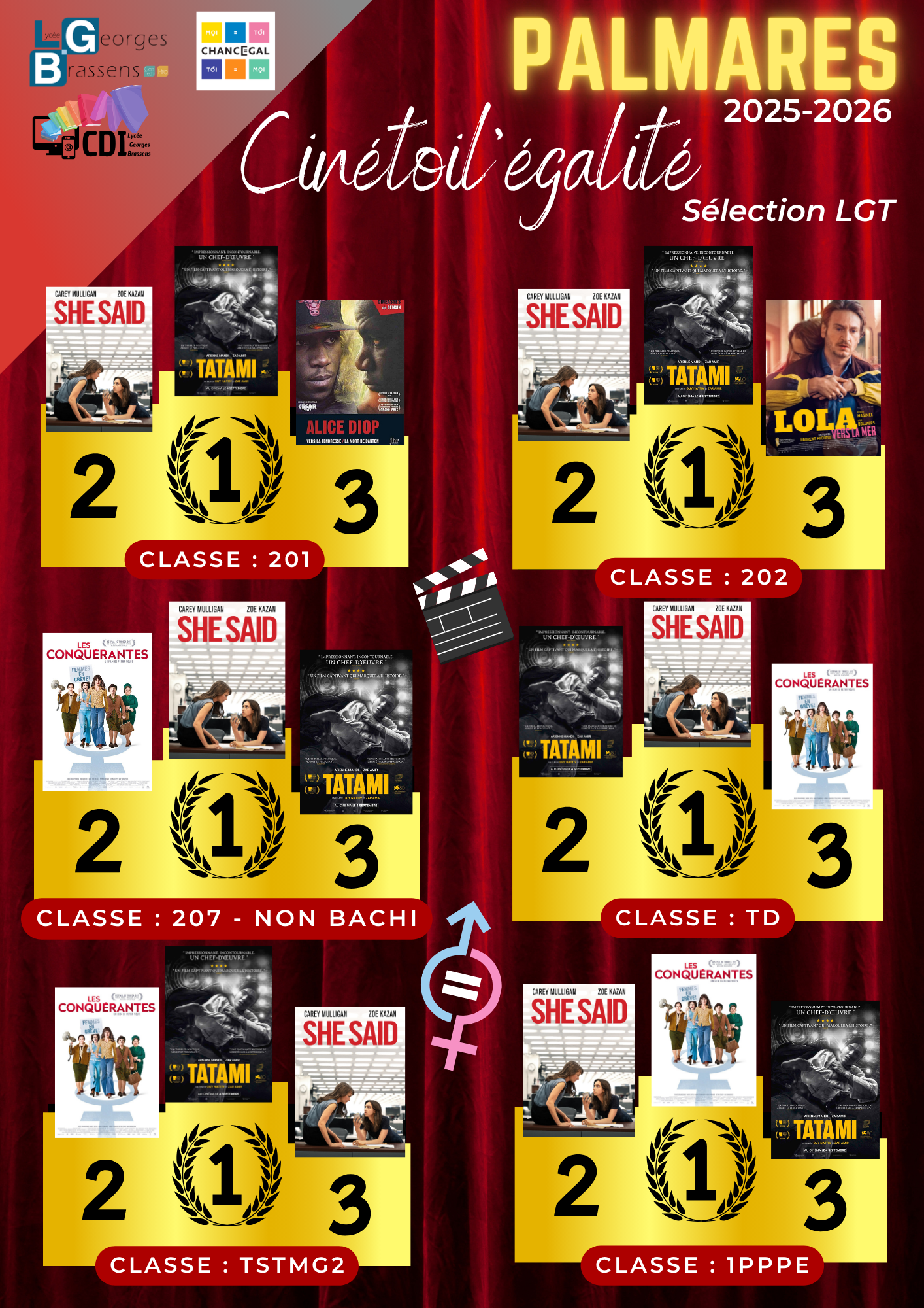 En fin de parcours, chaque classe a établi son propre palmarès, reflet des discussions menées et des films qui les ont le plus marqués.